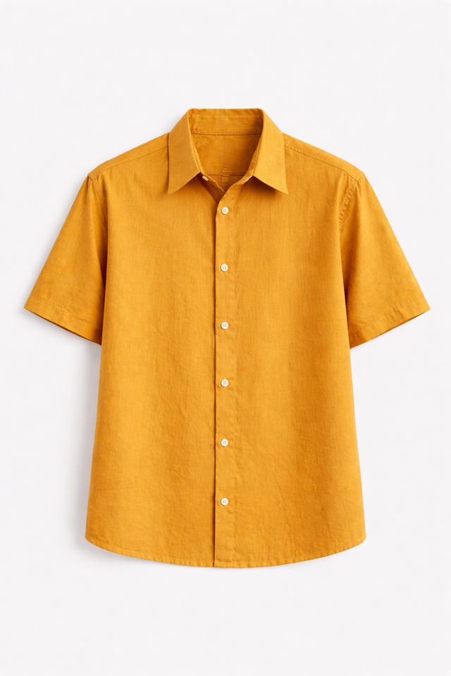 Camisa masculina confeccionada a mano en algodón orgánico. Diseño relajado. Cómoda y versátil.