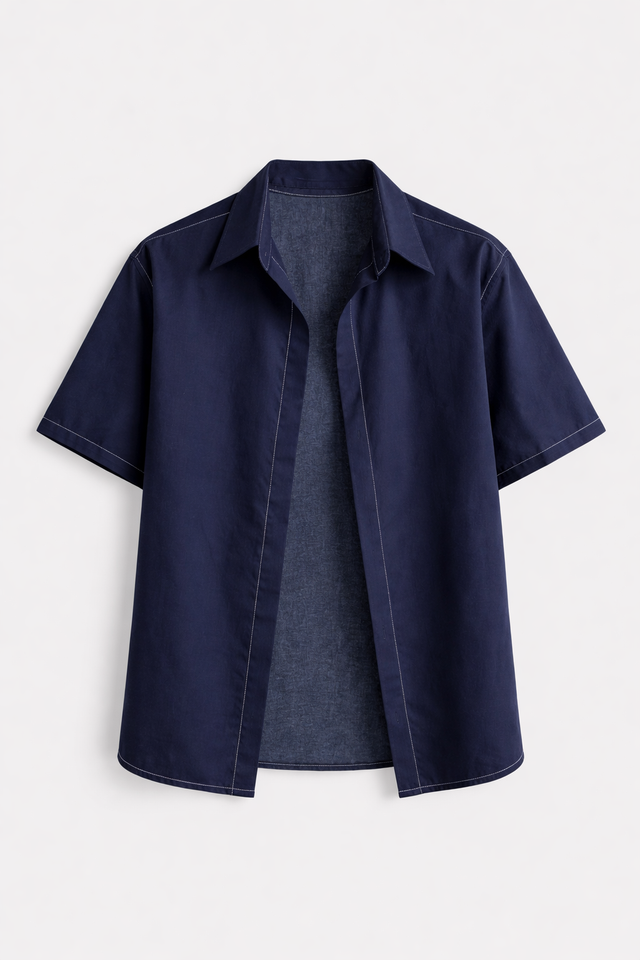 Camisa masculina confeccionada a mano en algodón texturizado. Diseño relajado, inspiración japonesa. Cómoda y versátil.